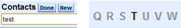 The center pane lists all the contacts in the currently selected group. These can be filtered using the Search field or the index tabs.