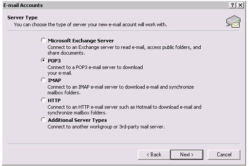 - Select "POP3" for the Server Type.