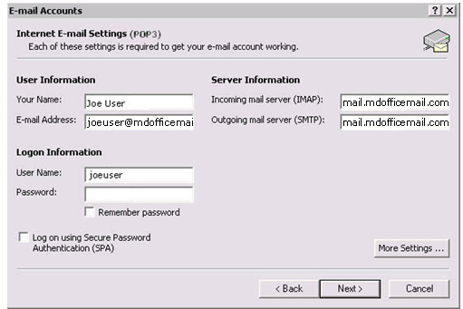 - Incoming mail Server (POP3): type mail.mdofficemail.com