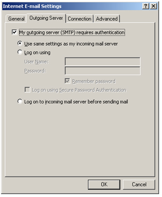 - Make sure that "My outgoing server (SMTP) requires authentication"