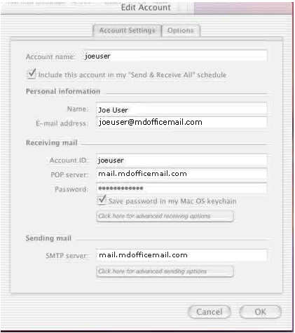 Secure Email Configuration Entourage SSL v.X POP for MacOS X