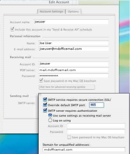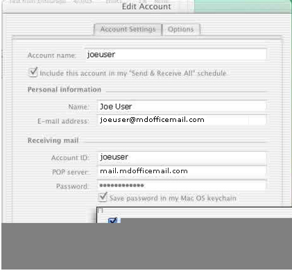 Entourage Email client to work with MDofficeMail Secure Email