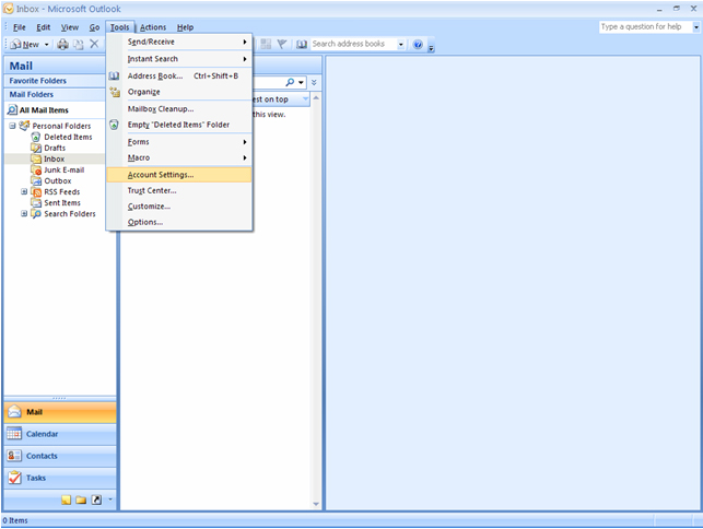 - Select "Tools" pull down menu and select "Account Settings"