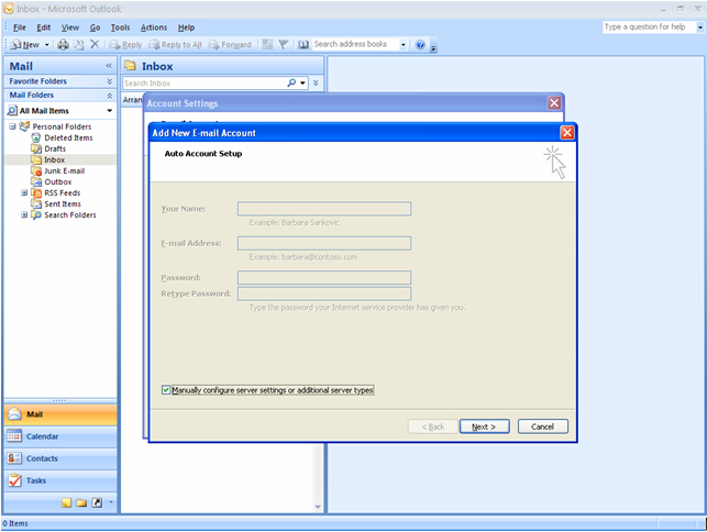 Step 3: Check “Manually configure server settings or additional server settings “and click Next.