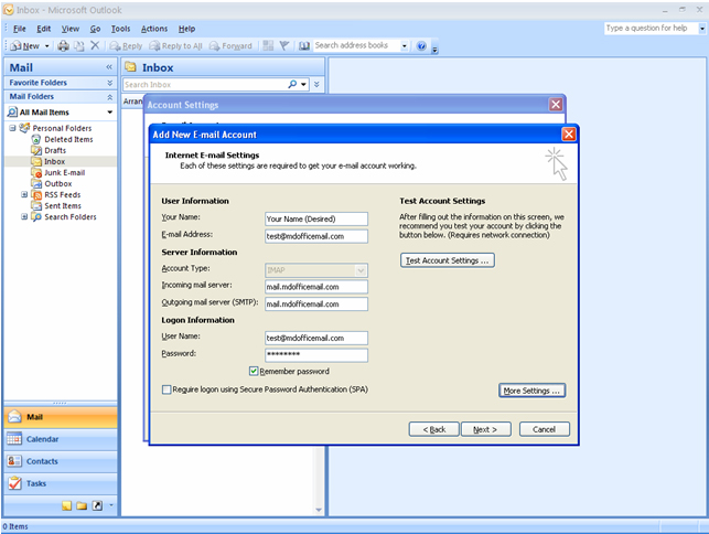 MDofficeMail configuration for Microsoft Outlook 2007- IMAP