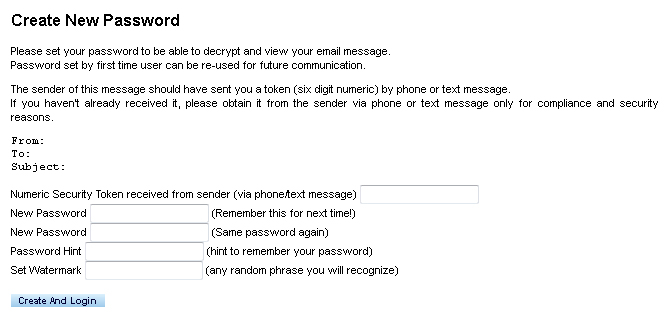 In scenarios as such, the recipient should click on the View Encrypted Message link to access the email received. Once you click on the View Encrypted Message, a new browser window opens where it asks you to create your own password for future communication.