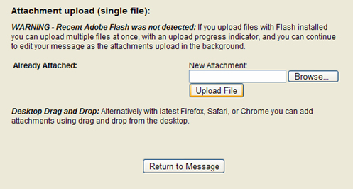To attach a file or a picture etc, click on attachments button in the new message. Now click on attach new. In the popup window, browse for the file and click on Upload file.Click on Return to message to return to your email.