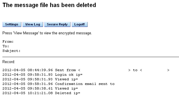 Once you click on the Delete message button the message is automatically deleted and you can check this in the Records. You will also receive a message stating that the message has been deleted.