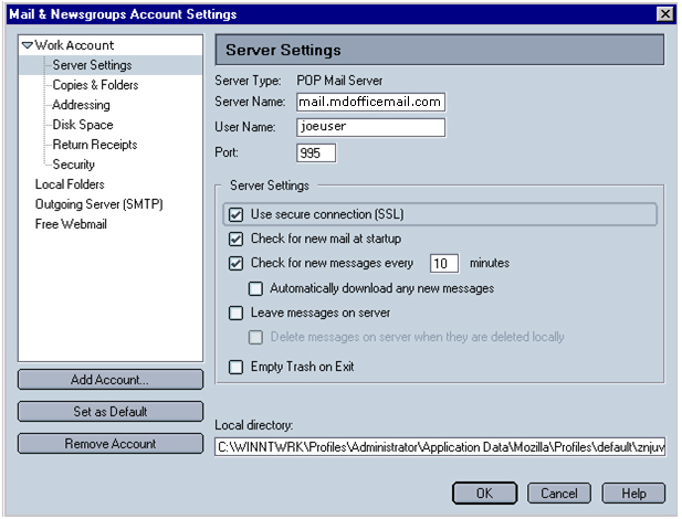 Secure Email Configuration - Netscape SSL Secure POP Email