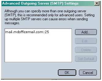 - Make sure "mail.mdofficemail.com:25" is selected as Default.