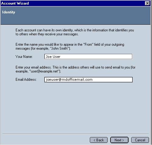 - Enter your Email address (ie: joeuser@mdofficemail.com).