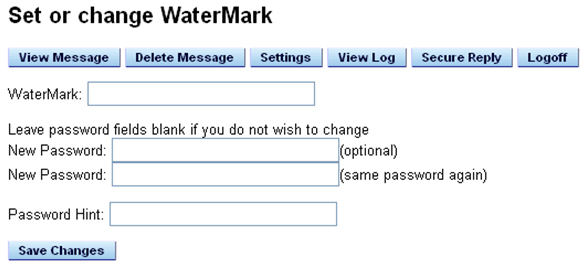 Allows you to tailor your previous settings such as WaterMark, New Password and Password Hint as shown below